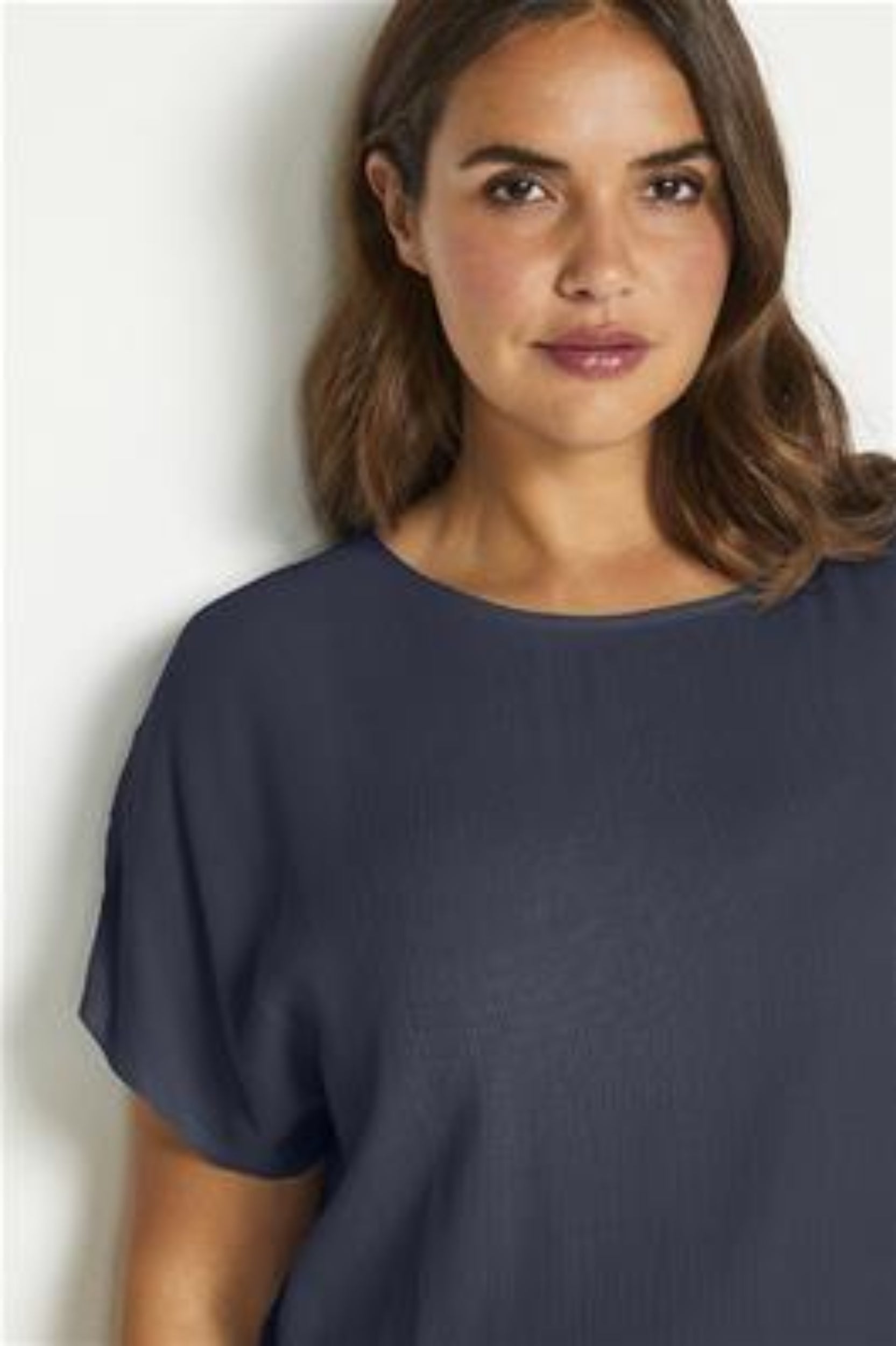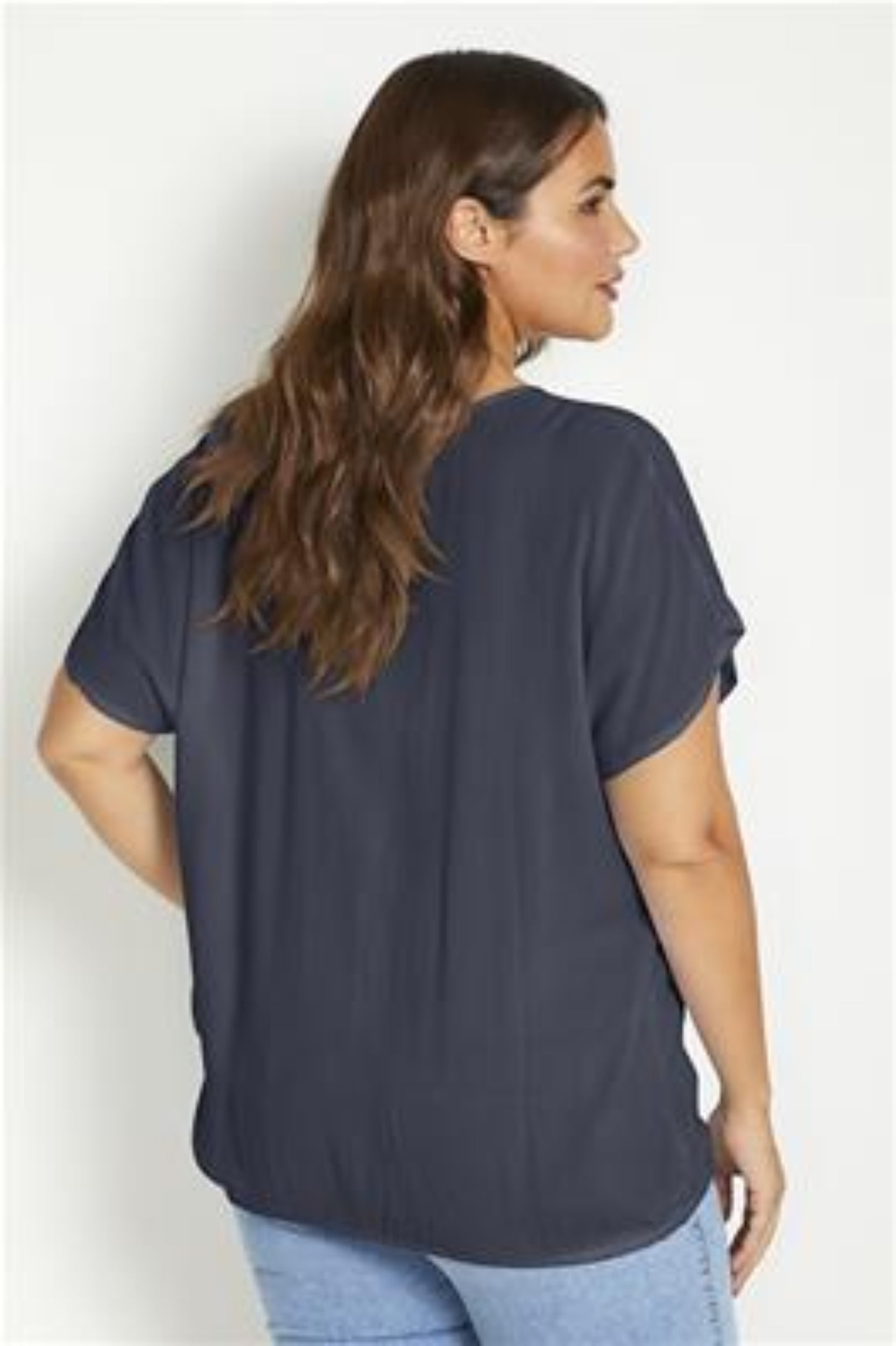 Crepe viscose blouse met aangeknipte mouwen, elastiek in de onderkant van de blouse.